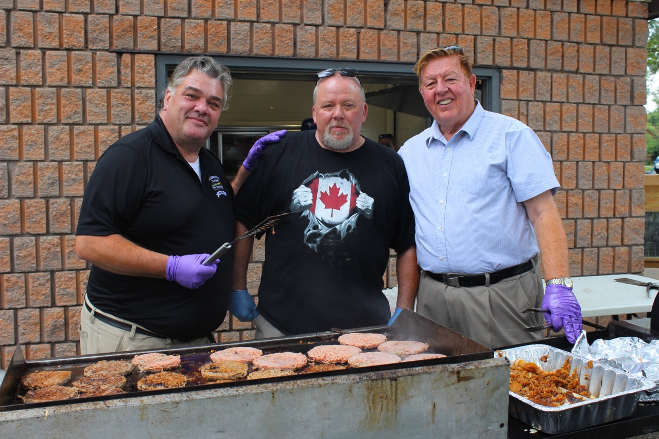 Ward 6 Beeton councillor Richard Norcross flips burgers like a pro with help from Gord Babcock, and Town of New Tecumseth mayor, Rick Milne. ...